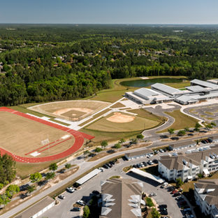 This 150,000 square foot middle school is located in a rural north Florida county which was originally developed reflecting an extensive agrarian and fishing heritage. The most memorable Architecture in the area is reflected in the simplicity and straightforward nature of the small, non-descript structures that one finds scattered throughout the local environment. Covered footbridges, small country churches with traditional Pattern 105 drop siding, and tin roofed Victorian era houses all display a welcoming simplicity, devoid of fashion or current design trends.