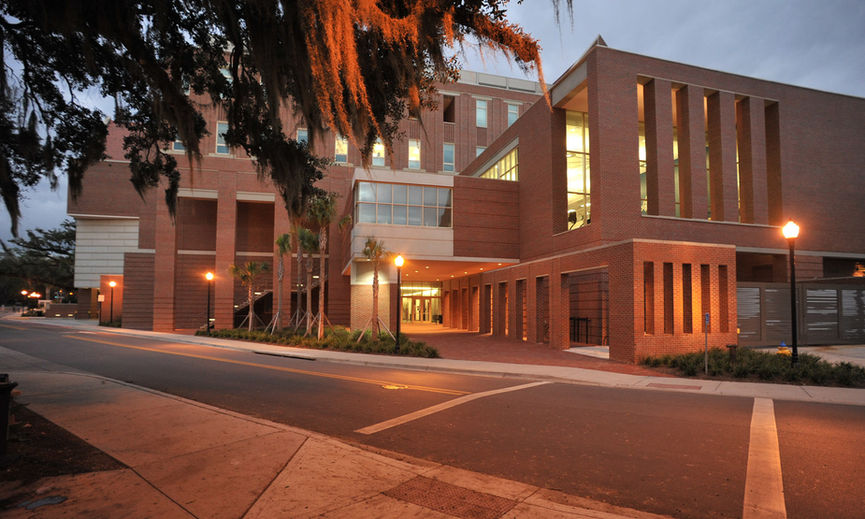 A central atrium symbolically and physically knits the departments together and aids in way finding. The design was subject to stringent architectural guidelines. The Campus Guidelines mandated the incorporation of exterior features, representative of the Collegiate Gothic and Jacobean Revival architectural tradition. The resulting design attempts to reinterpret these guidelines into a work that utilizes some of the familiar visual language, but does so in a novel and contemporary manner.